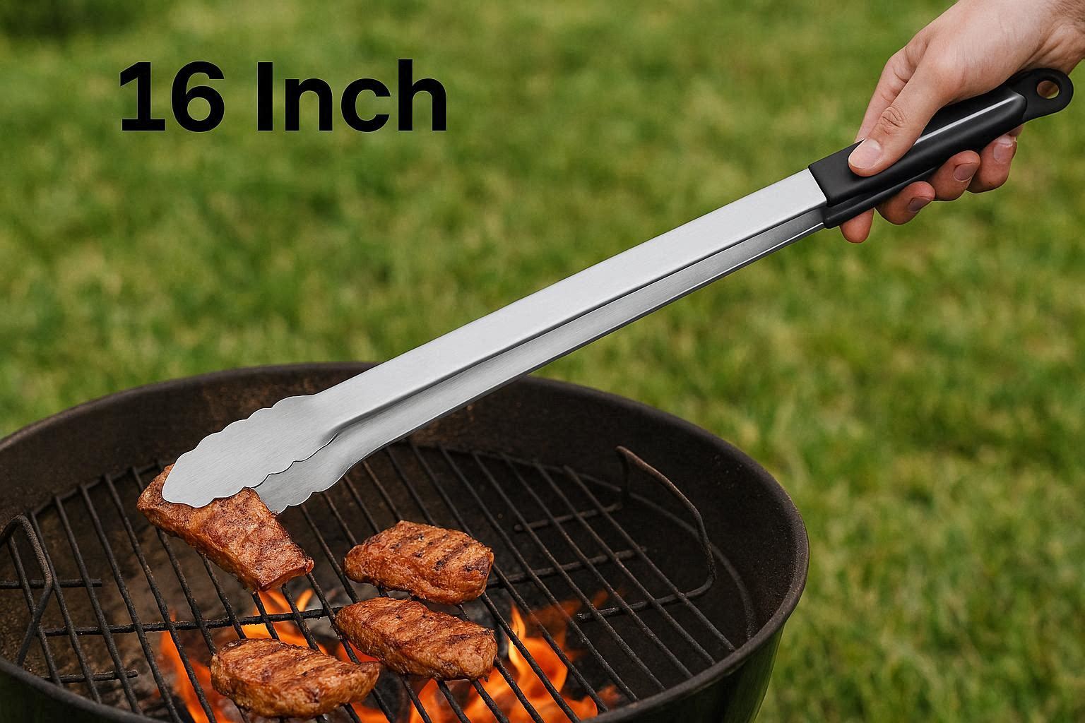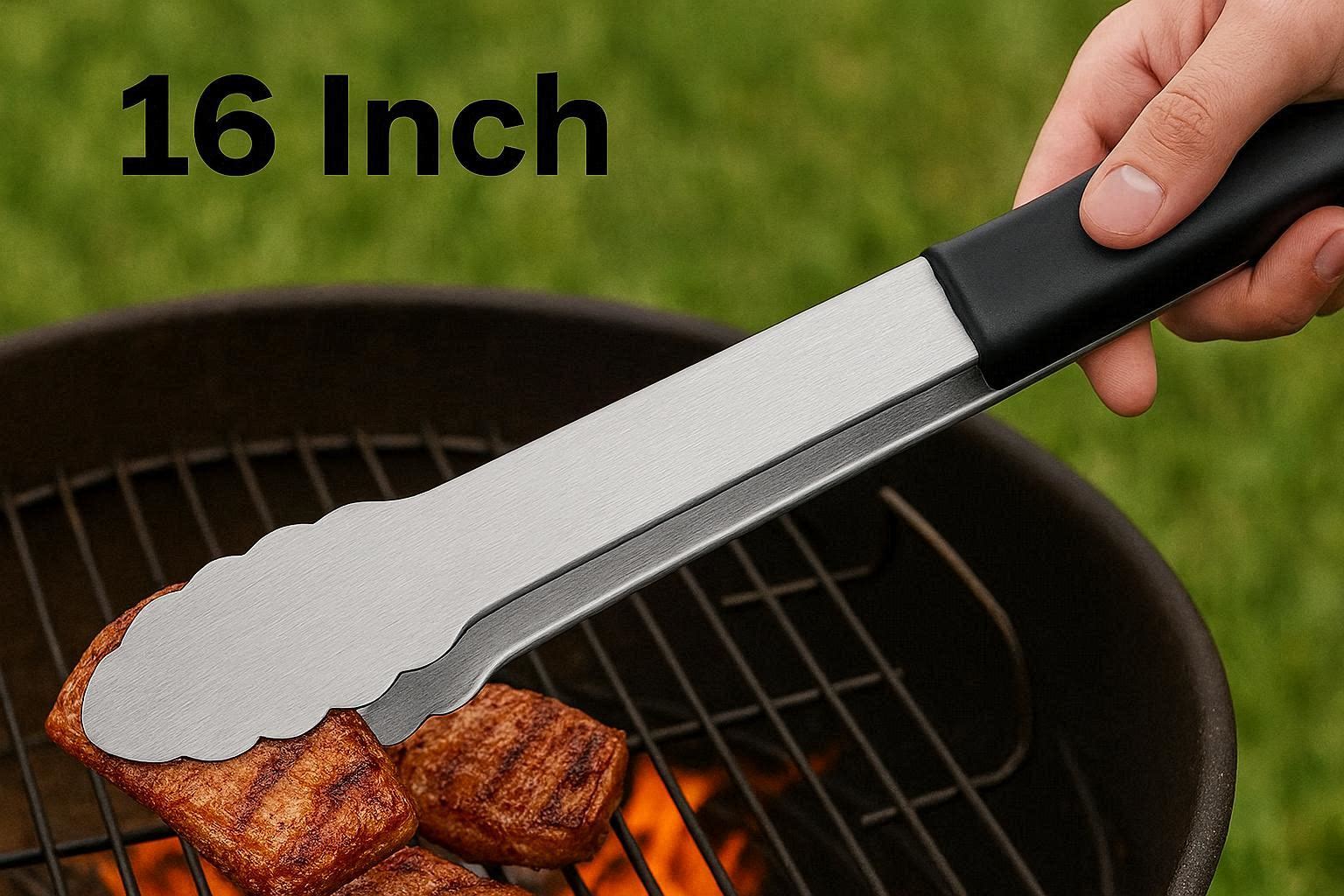 The tongs are heat resistant up to 500??F (260??C), making them safe for use on hot grills and griddles. They feature a comfortable non slip grip that reduces hand fatigue during long cooking sessions, and the spring loaded mechanism ensures easy squeezing. The tongs are dishwasher safe for easy cleaning and feature a hanging loop for convenient storage. Whether you??re grilling for a crowd or just your family, these extra long tongs are an essential tool.