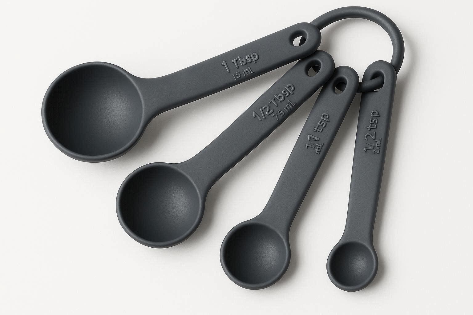 This 5 piece silicone measuring spoon set is perfect for both dry and liquid ingredients, featuring a flexible silicone tip that easily scoops and releases ingredients without leaving residue. The spoons are heat resistant up to 480??F (248??C), making them safe for use in hot pans and bowls, and they are BPA free, ensuring they are safe for food contact. Each spoon has clear, printed markings in metric and imperial units, including 1/4 tsp, 1/2 tsp, 1 tsp, 1/2 tbsp and 1 tbsp.